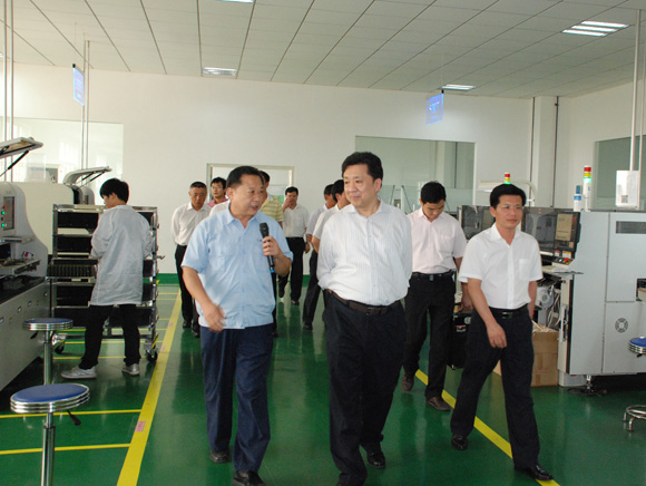 8月29日,中國電子信息產(chǎn)業(yè)集團(tuán)有限公司董事長芮曉武一行到我公司光電產(chǎn)業(yè)園參觀考察。公司副總經(jīng)理張長海向芮曉武一行介紹了公司整體情況、節(jié)能燈生產(chǎn)研發(fā)和市場情況,芮曉武對企業(yè)的發(fā)展給予了充分肯定。