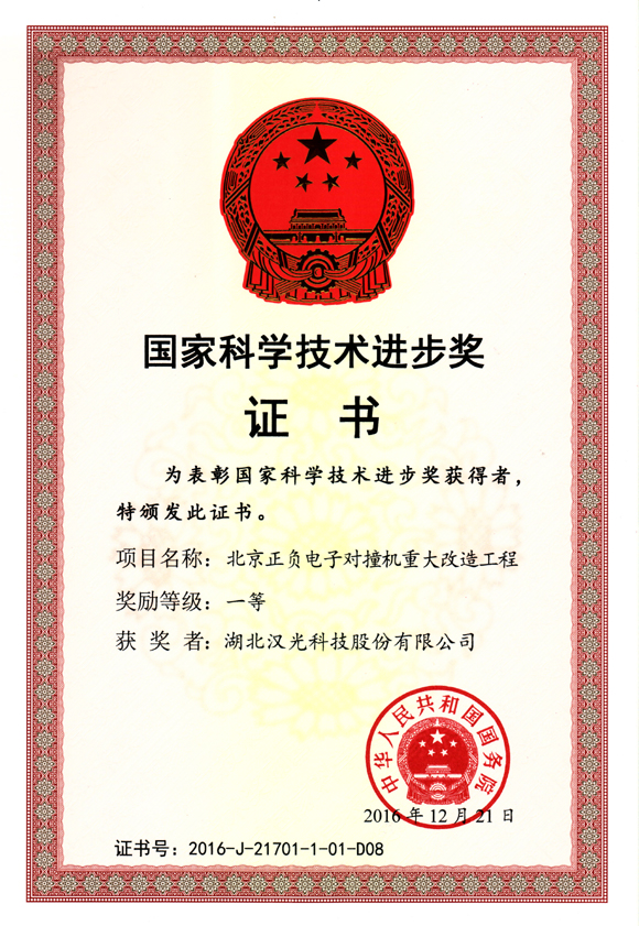 1月9日,2016年度國家科學技術(shù)獎勵大會在北京人民大會堂隆重舉行。由中國科學院高能物理研究所牽頭、我公司參加完成的“北京正負電子對撞機重大改造工程”榮獲科學技術(shù)進步一等獎。
